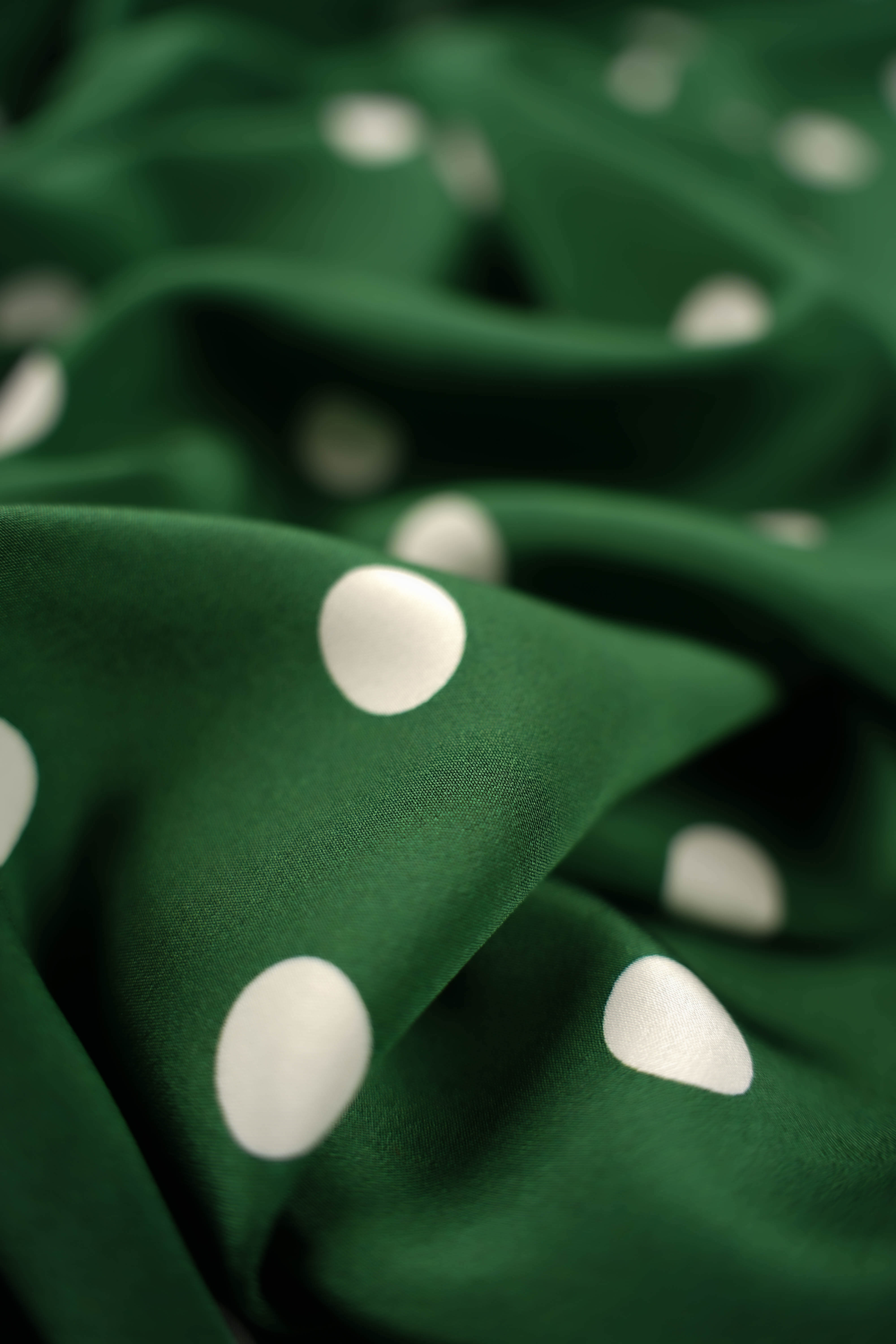 Made by Gårda Textil - Siden - Crêpe de Chine - Dotted Racing Green