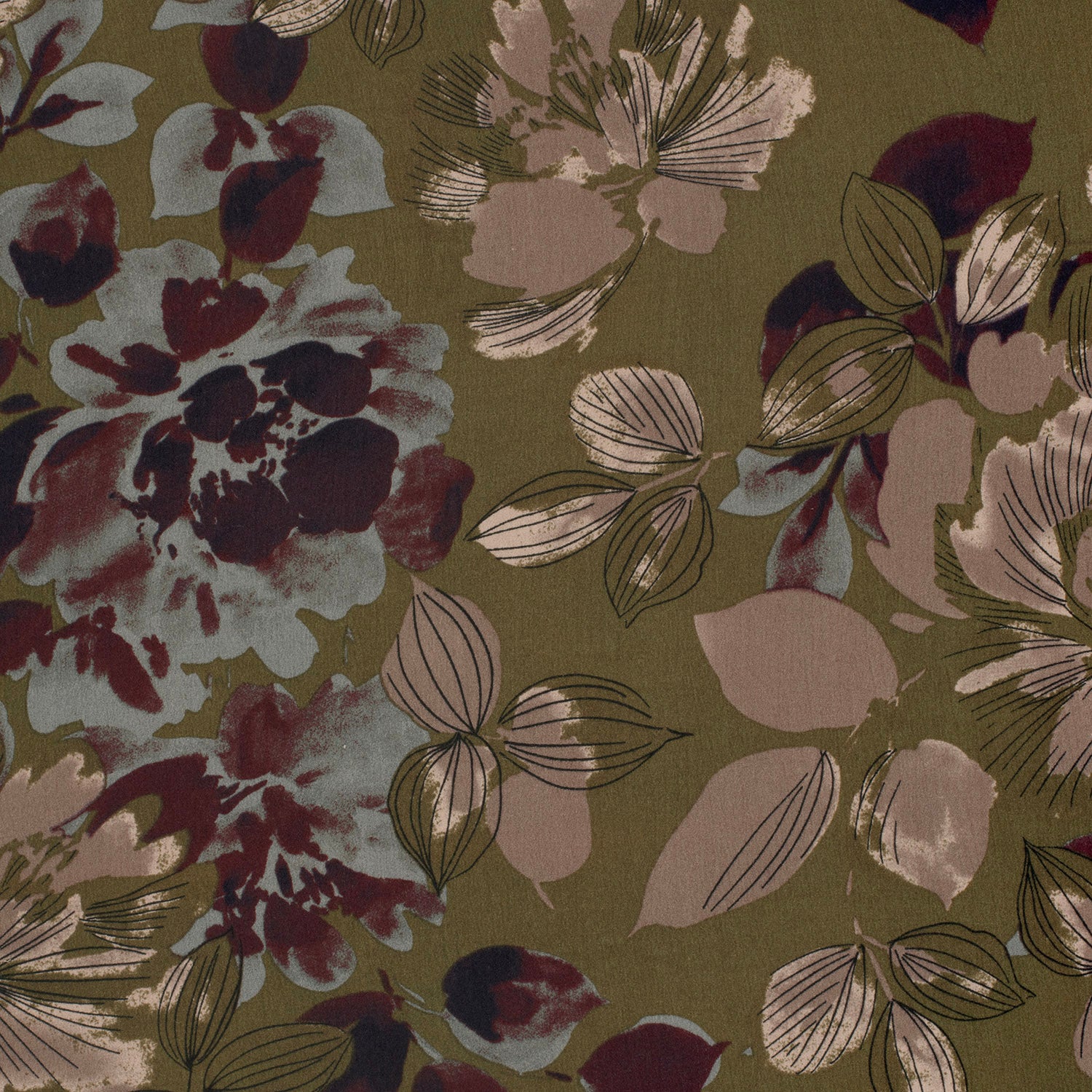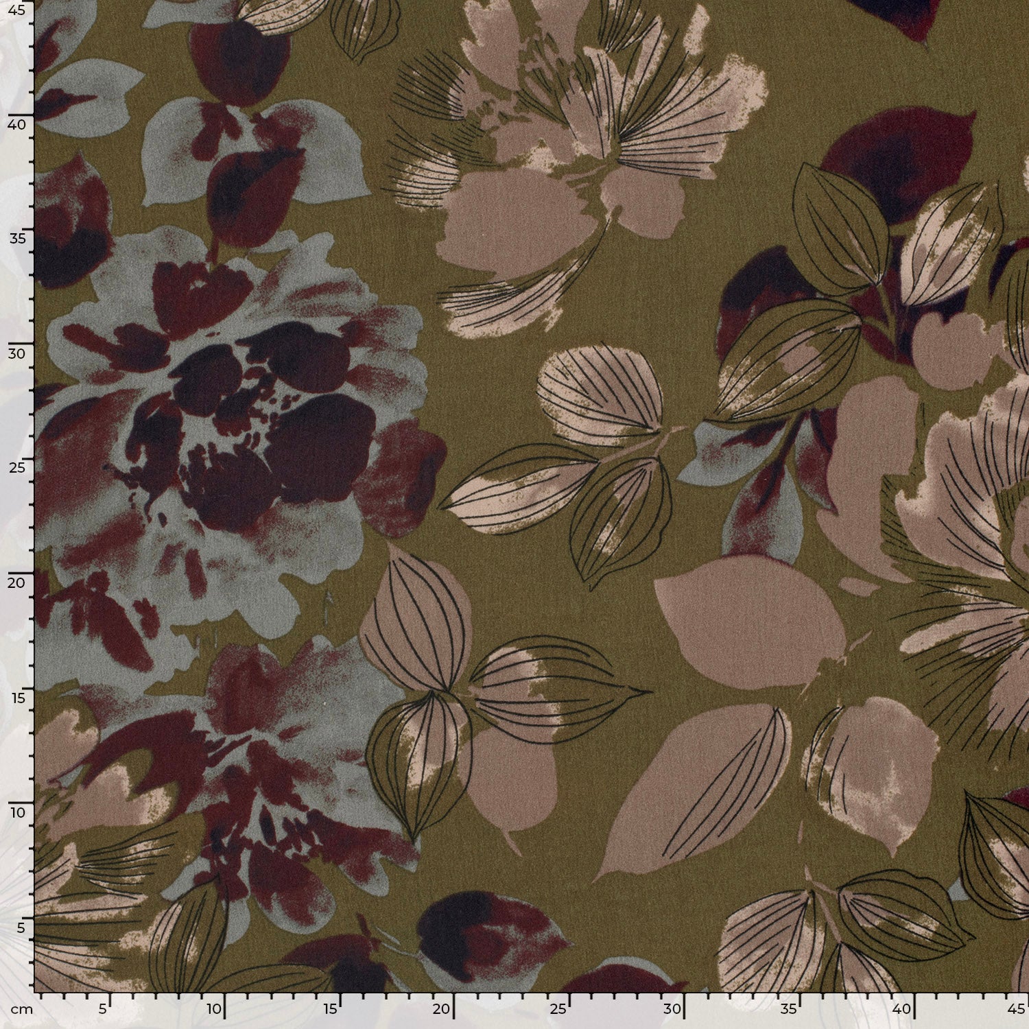 Mönstrad - Viskos - Crêpe - Blommor - Taupe - 054