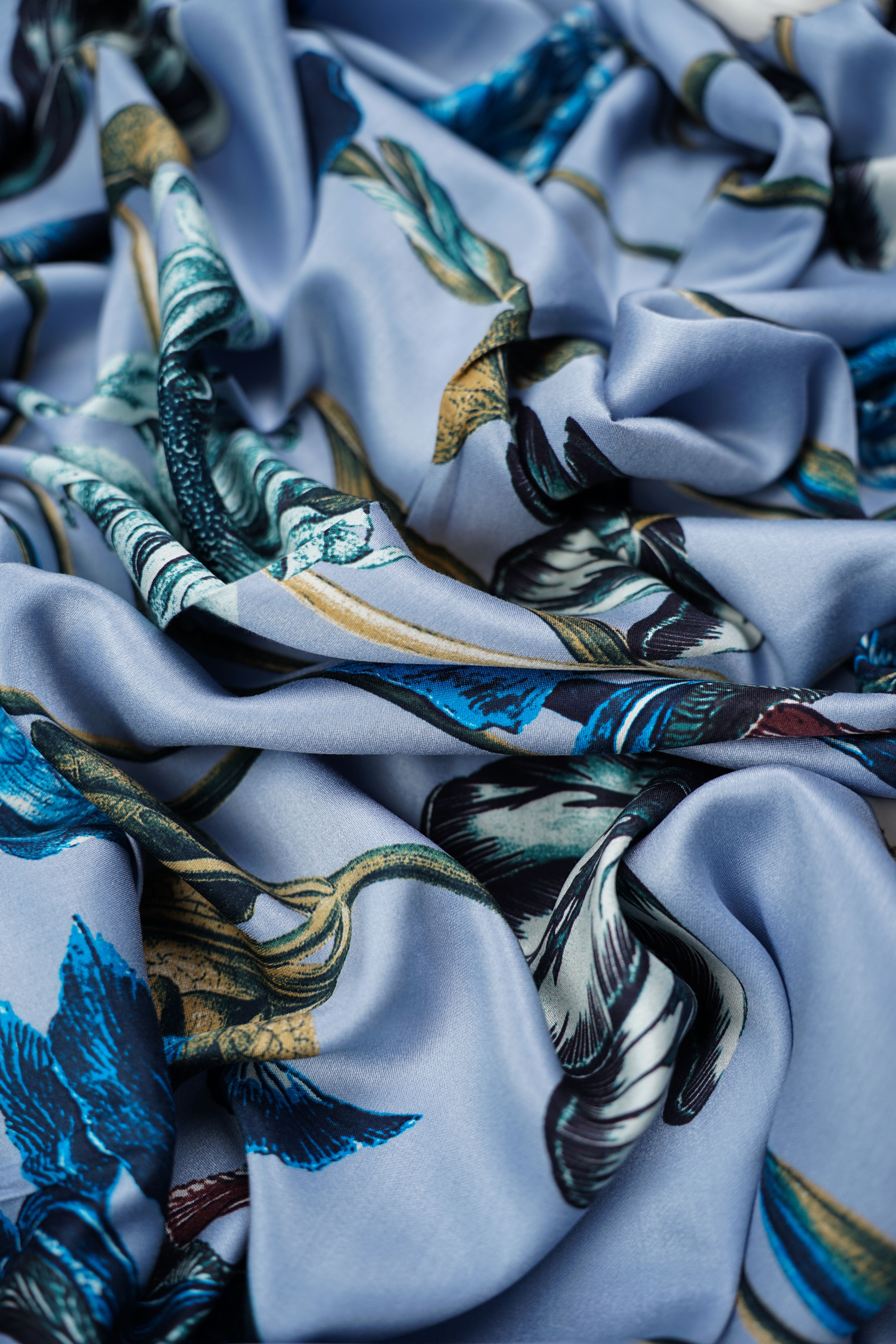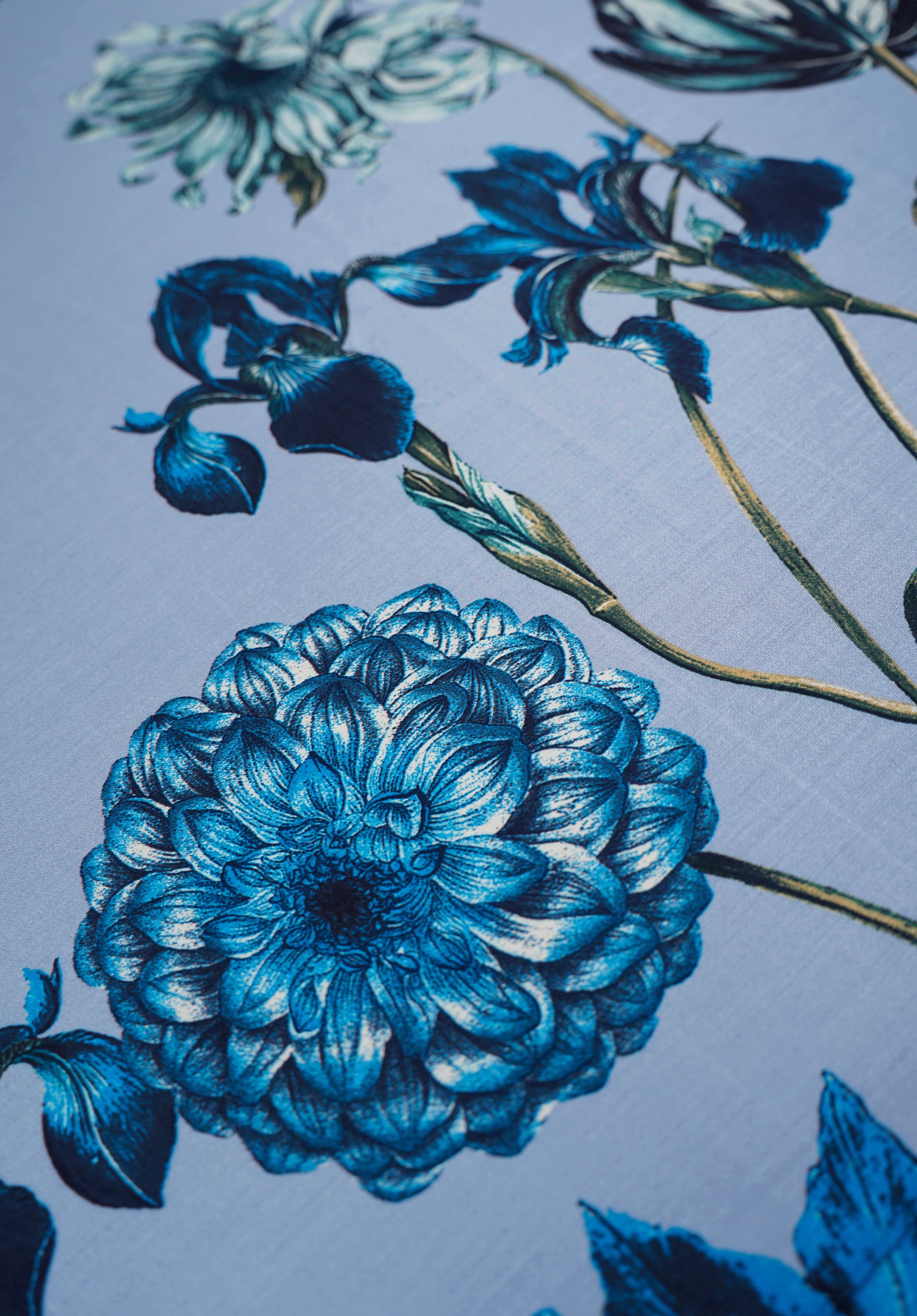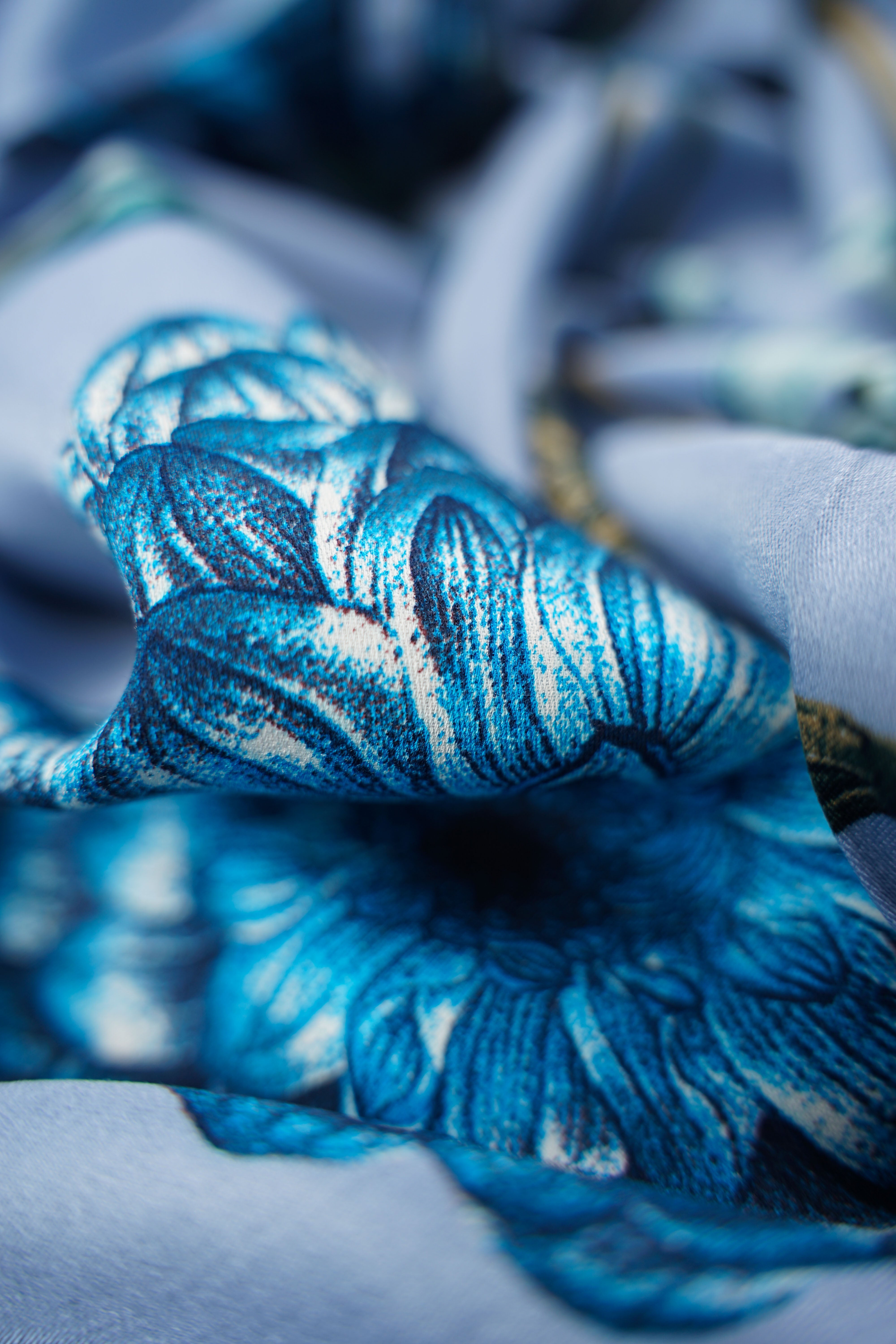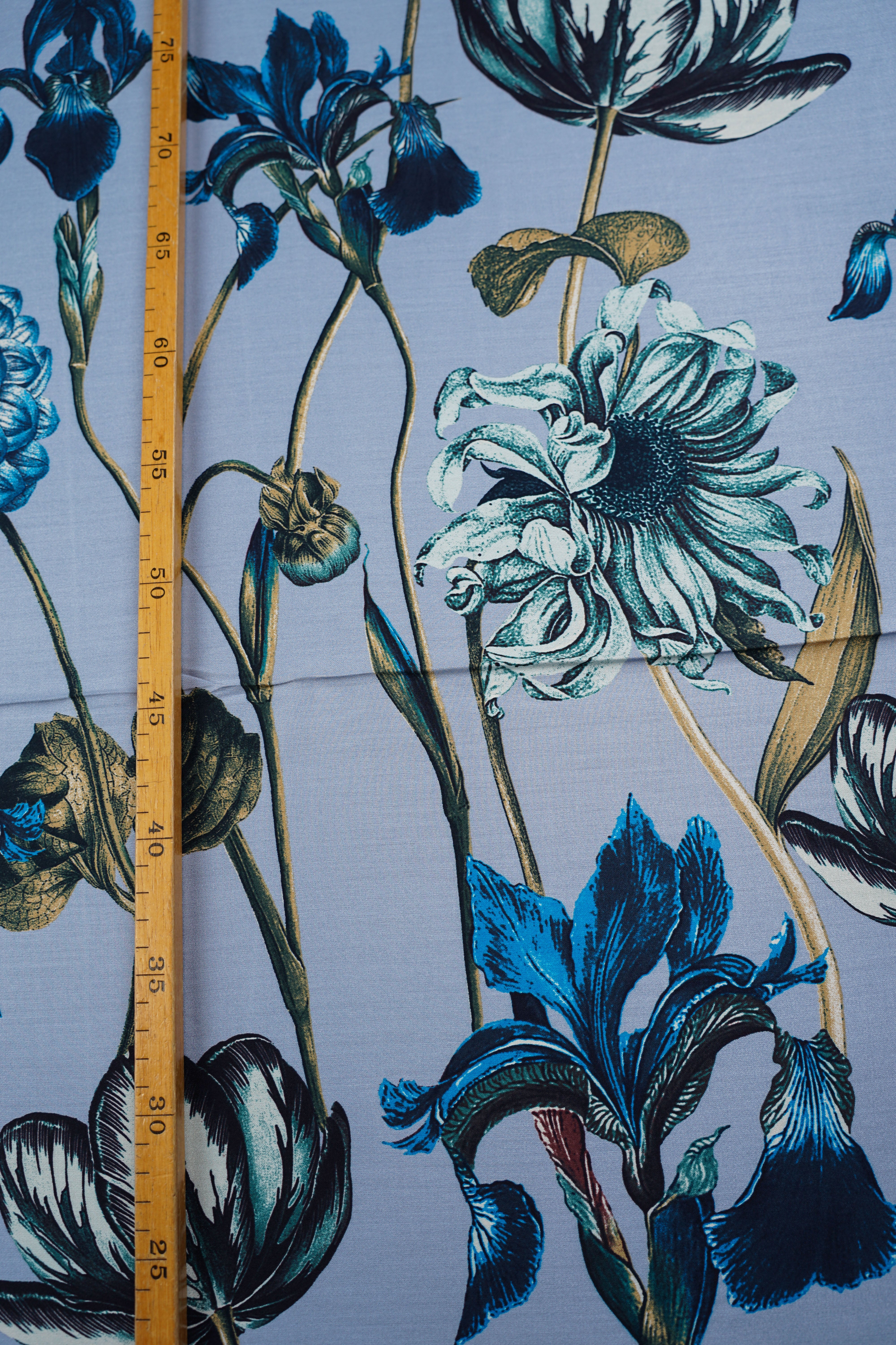 Viskossatin - Stort vackert mönster - Blommor - Ljusblå