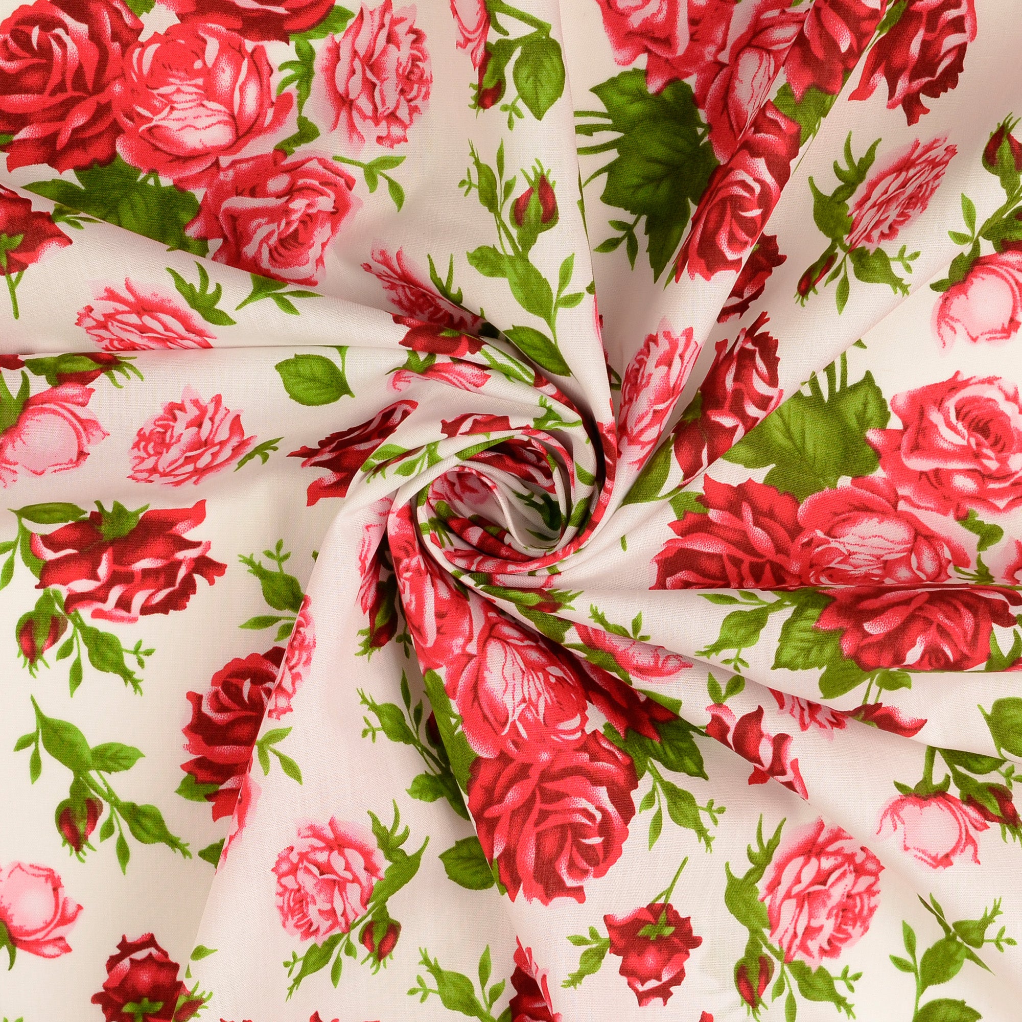 Bomullspoplin med klassiska rosor