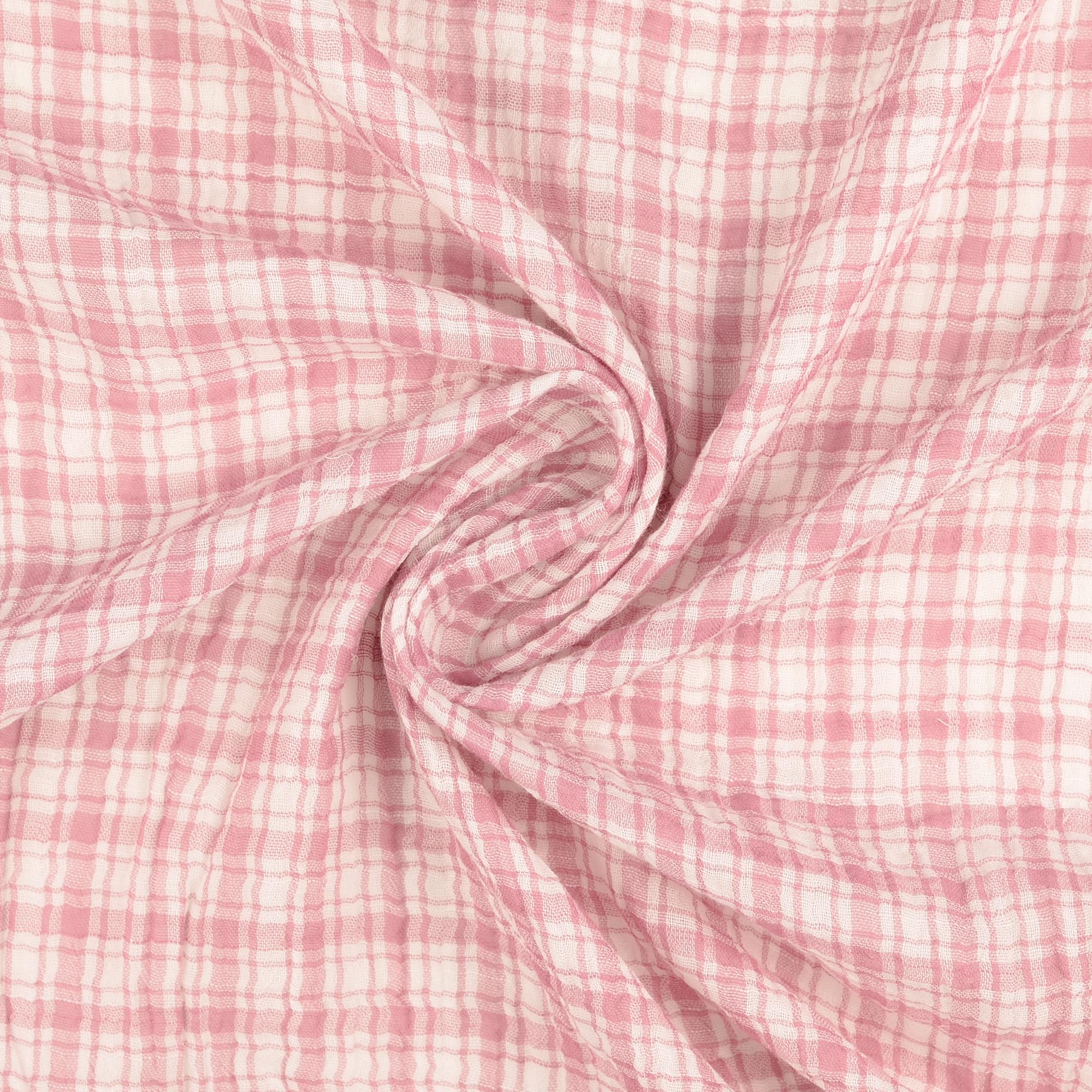 Mönstrad Muslin - Double Gauze - Rutor - Rosa