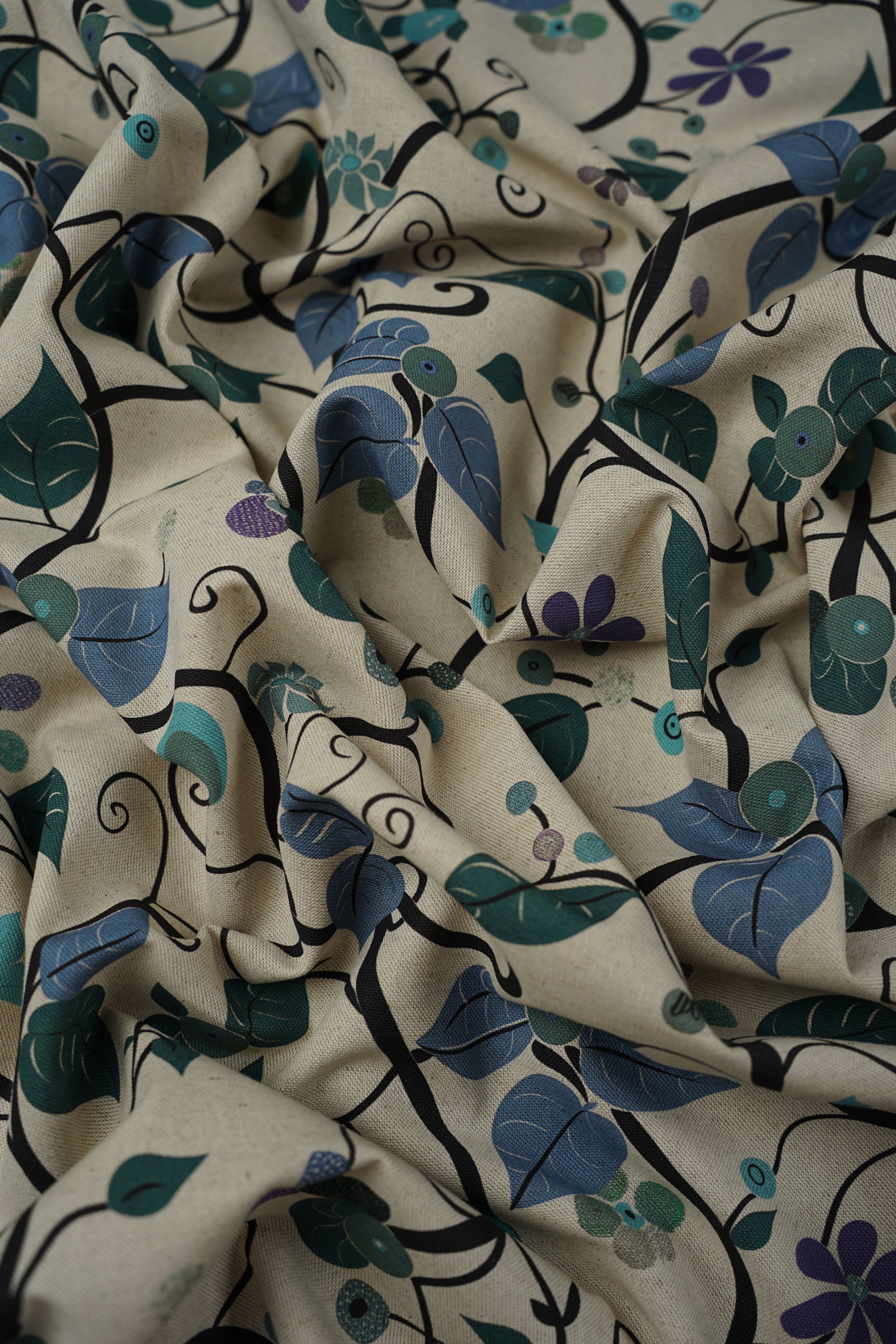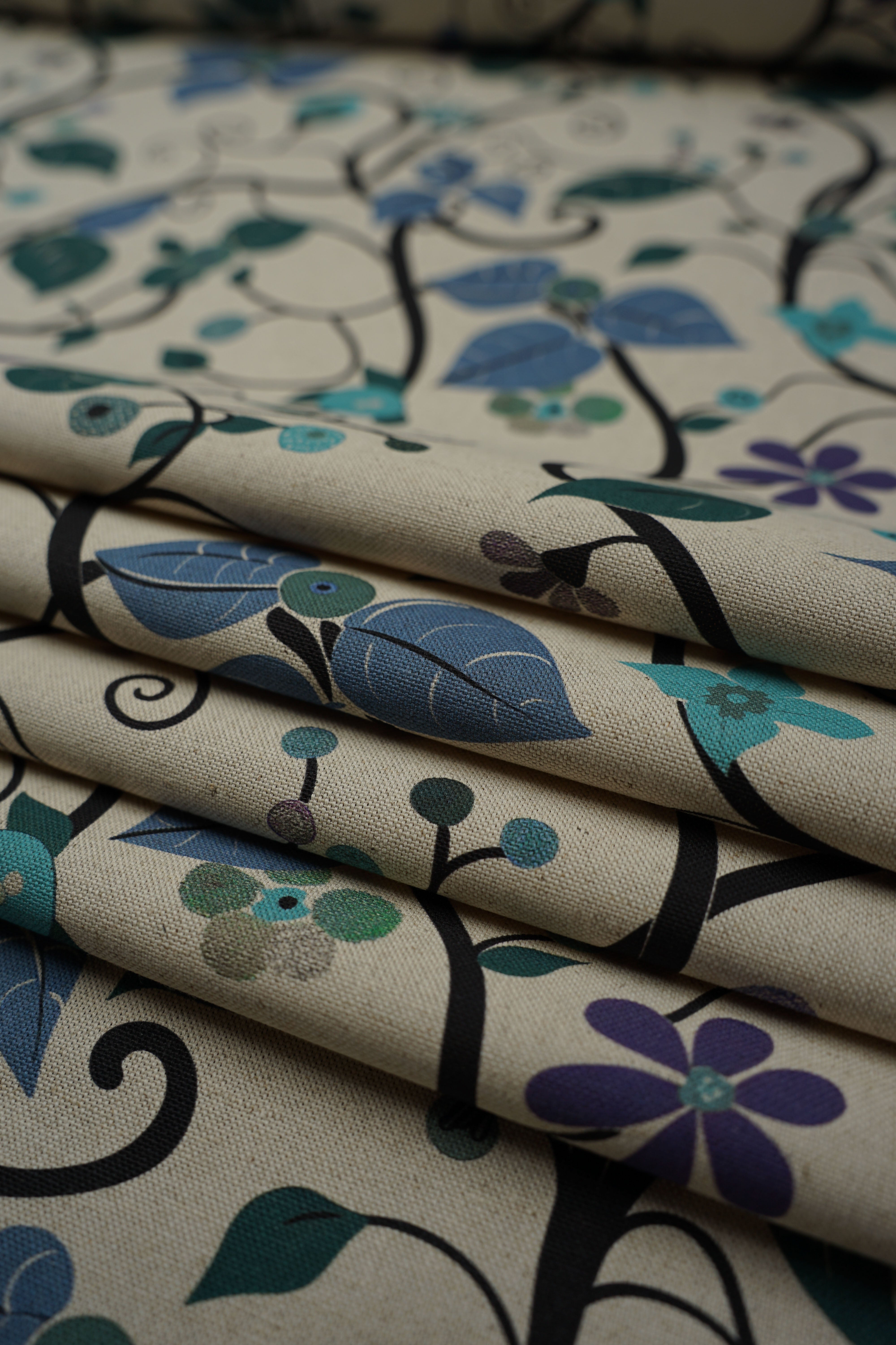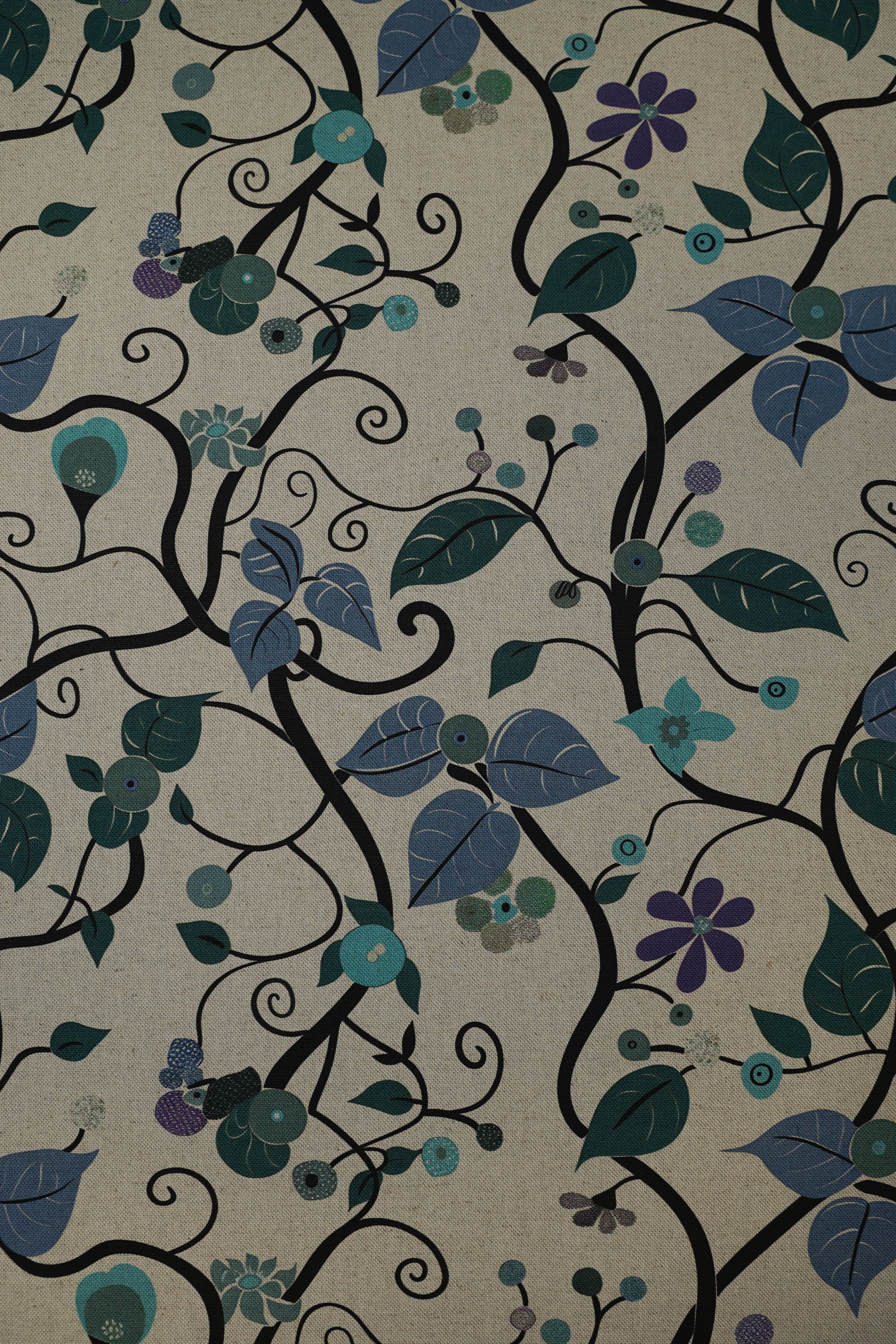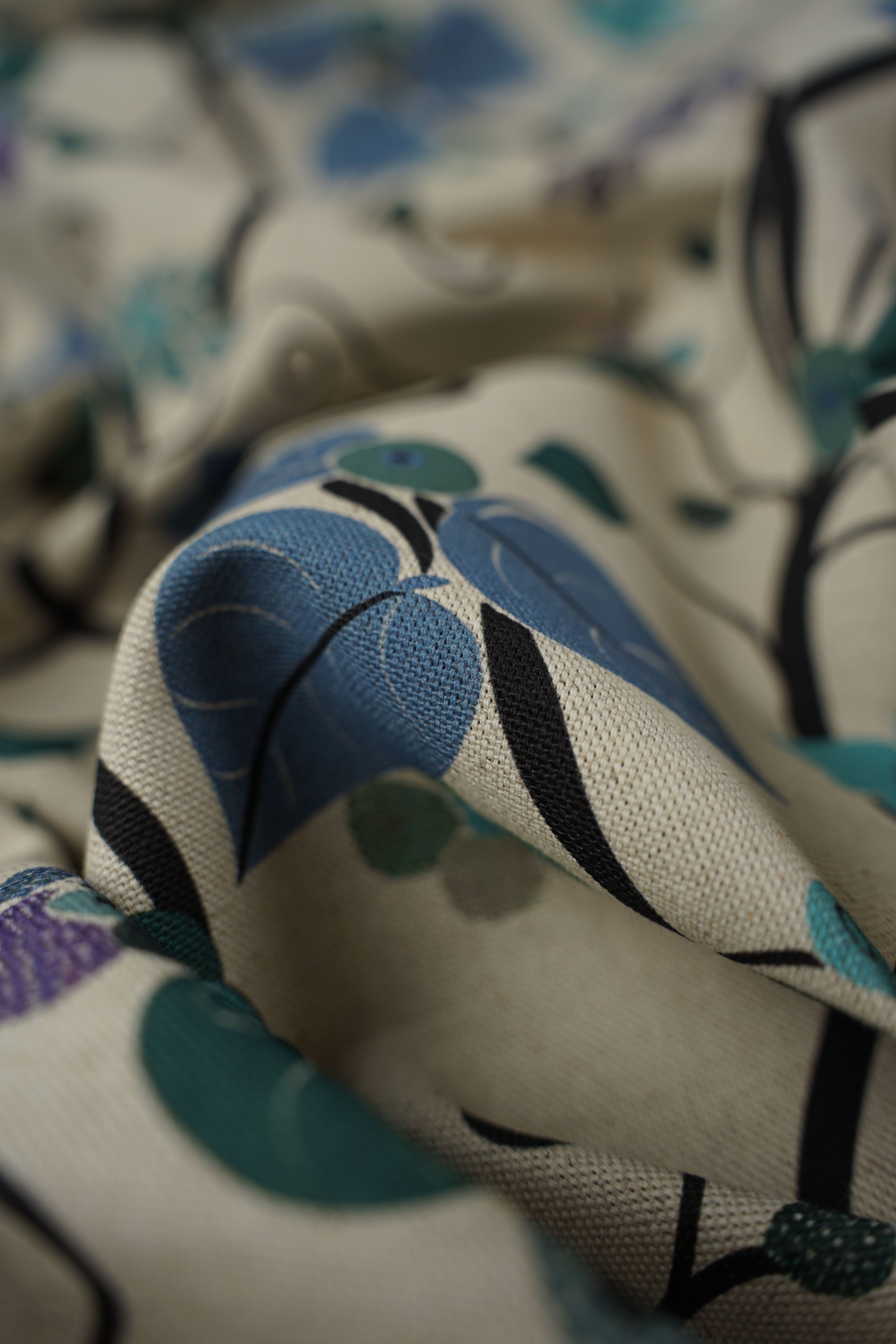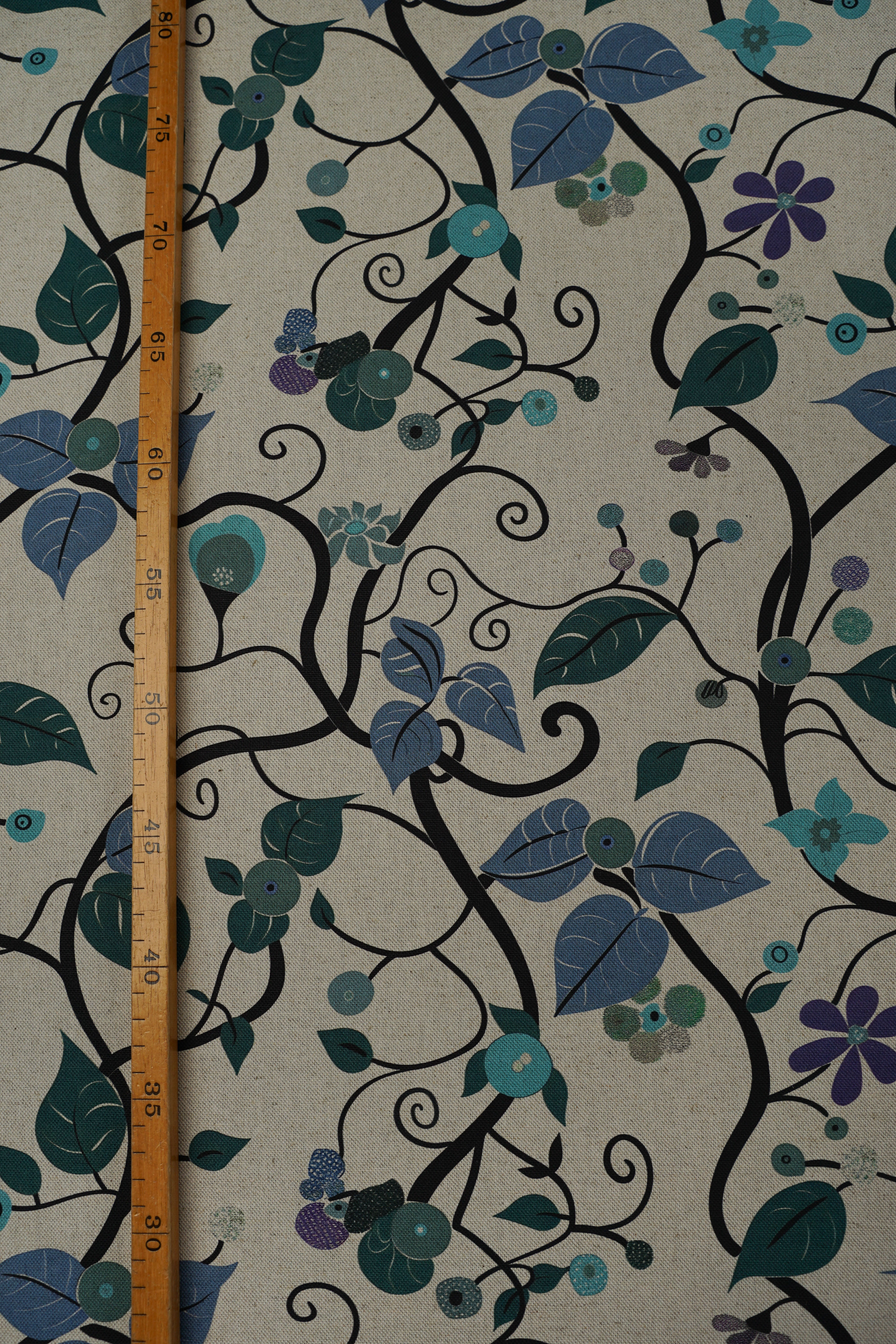 Jugend - Mönstrat - Möbeltyg - Gardintyg - Wallflower - Blå