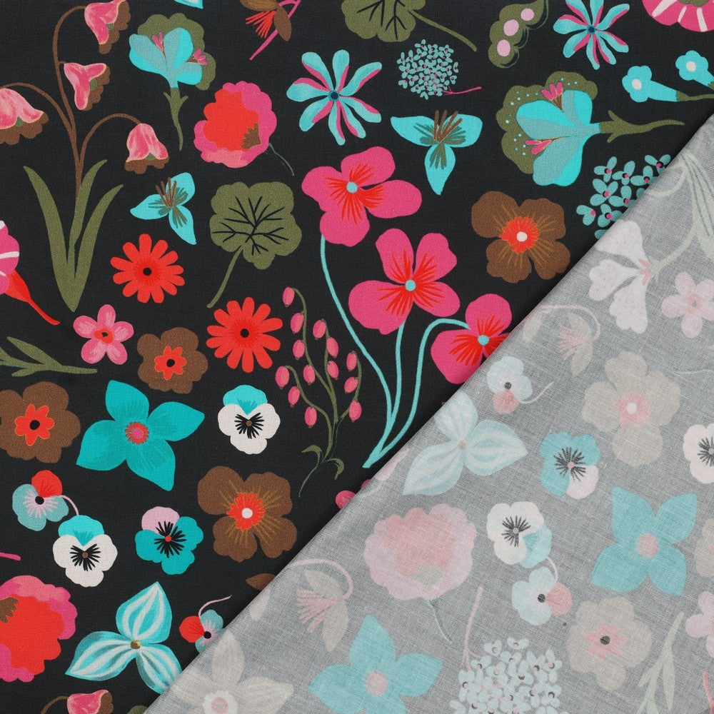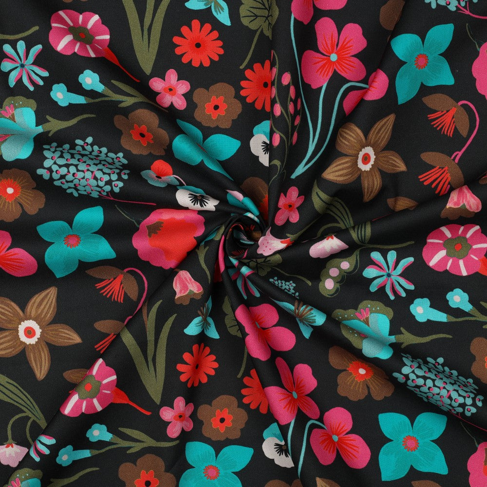 Nerida Hansen - Fine Poplin - Meadow Flower - Bomull - Jet Black