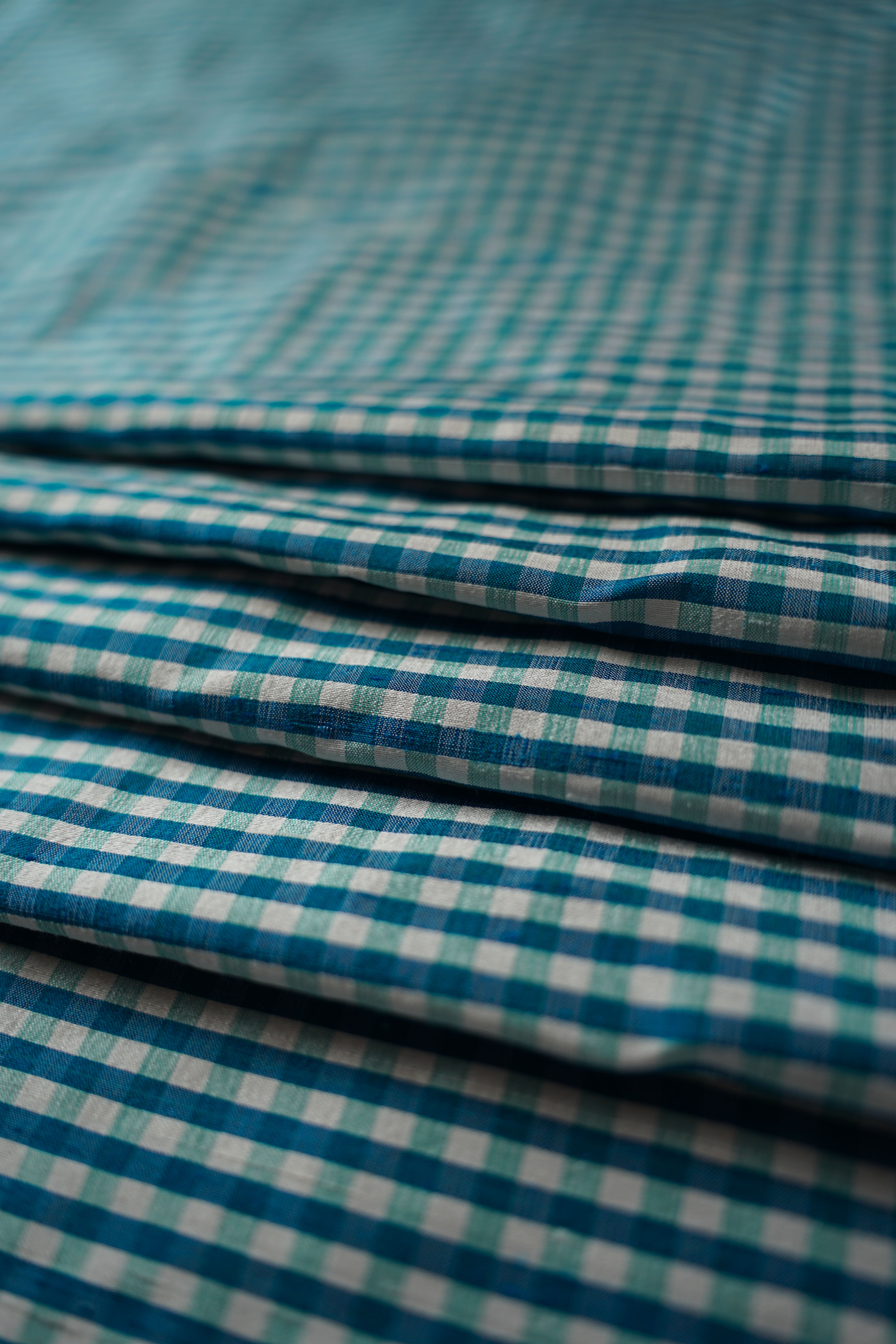 Smårutigt thaisiden från vår vintage-avdelning, passar bra till klänningar, kjolar och blusar